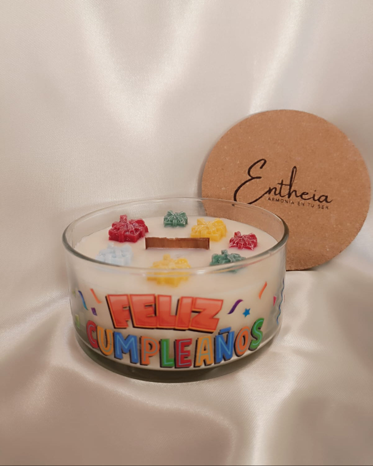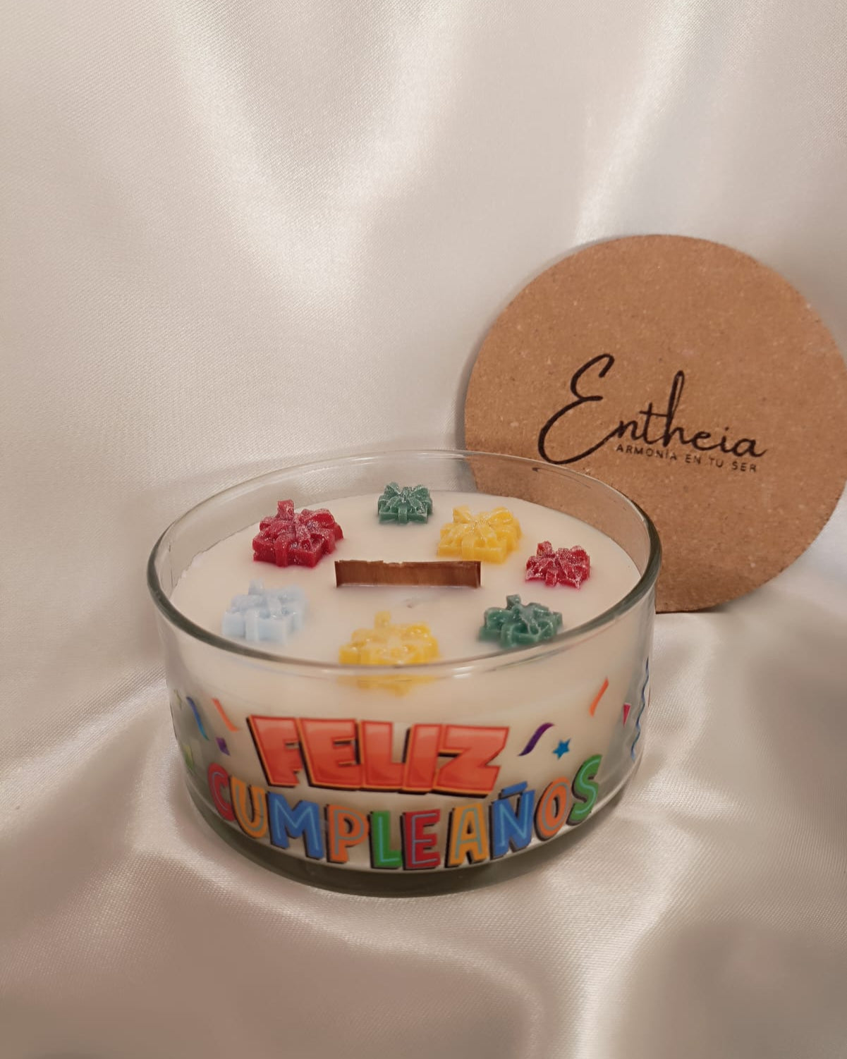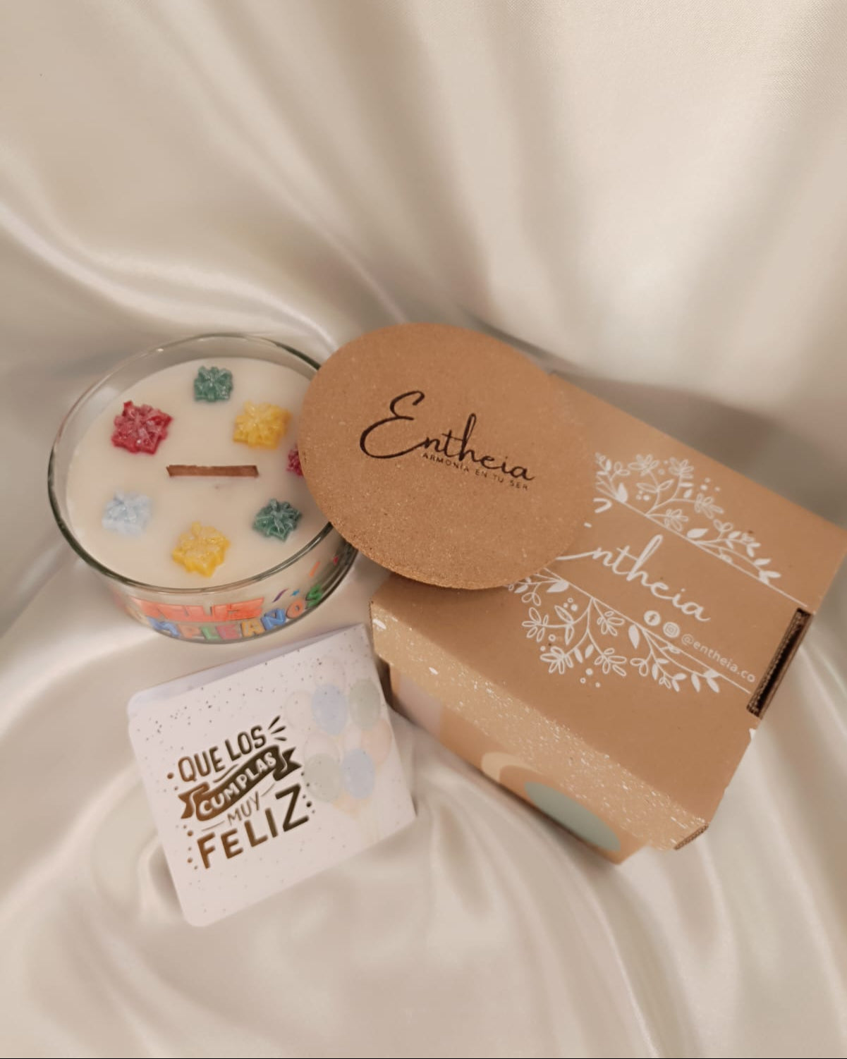 ✨ Detalle Único: Regalos de colores incrustados en la cera.