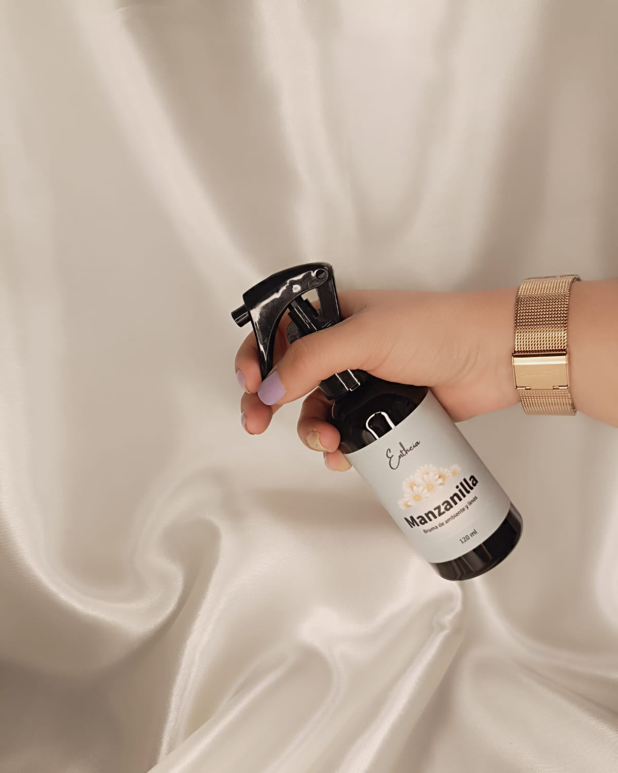 Cada rocío es un susurro de la naturaleza, gracias a la pureza de los aceites esenciales naturales que capturan la esencia calmante de la manzanilla. Es el complemento ideal para tu ritual nocturno, preparando tu cama para el sueño y tu alma para la tranquilidad.