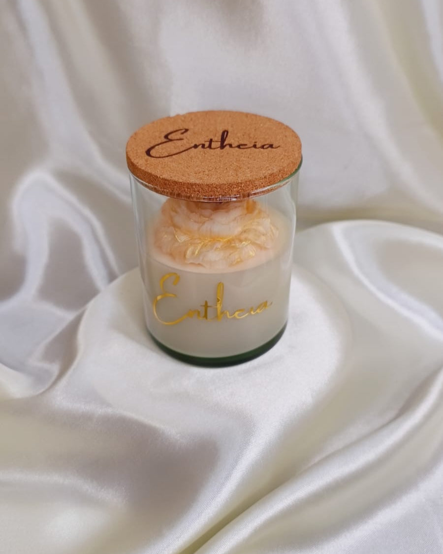 - ♻️ Arte Sostenible: Envase de vidrio reciclado artesanal + tapa de corcho.