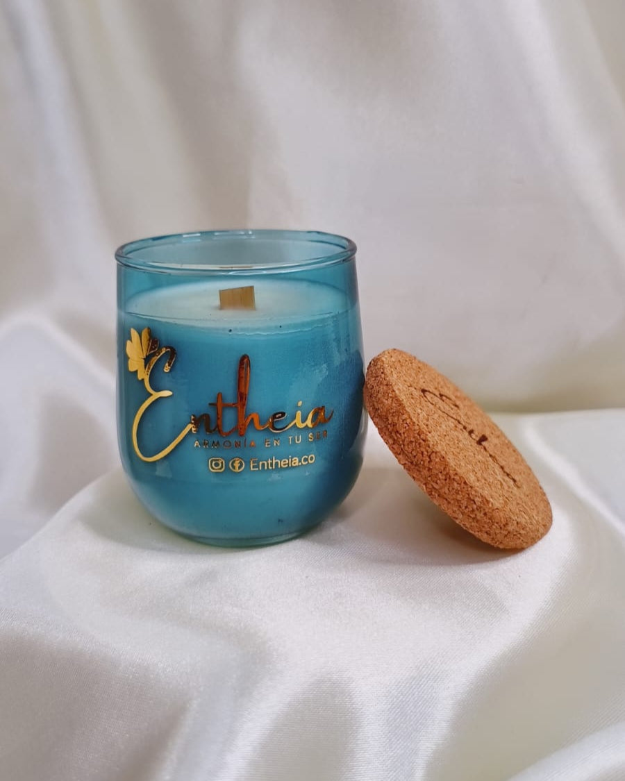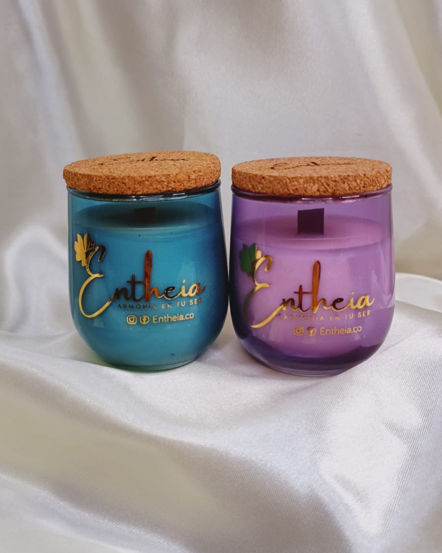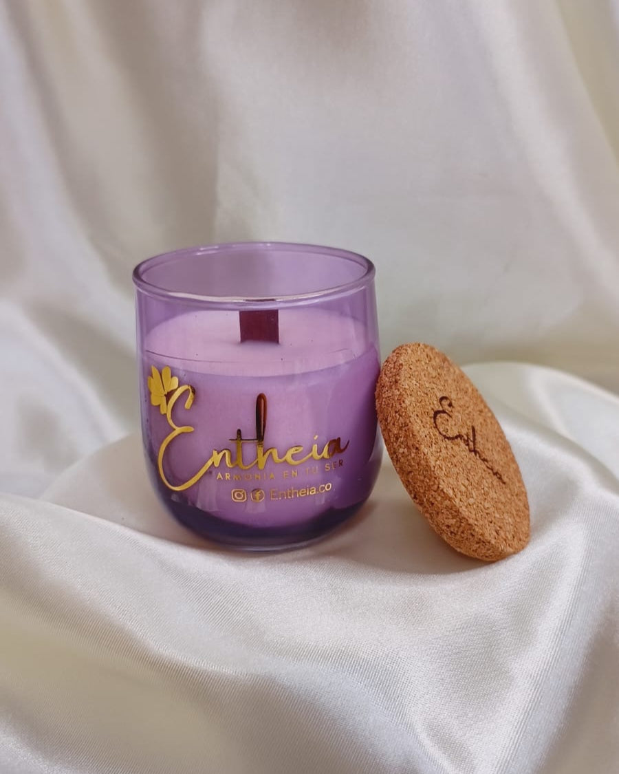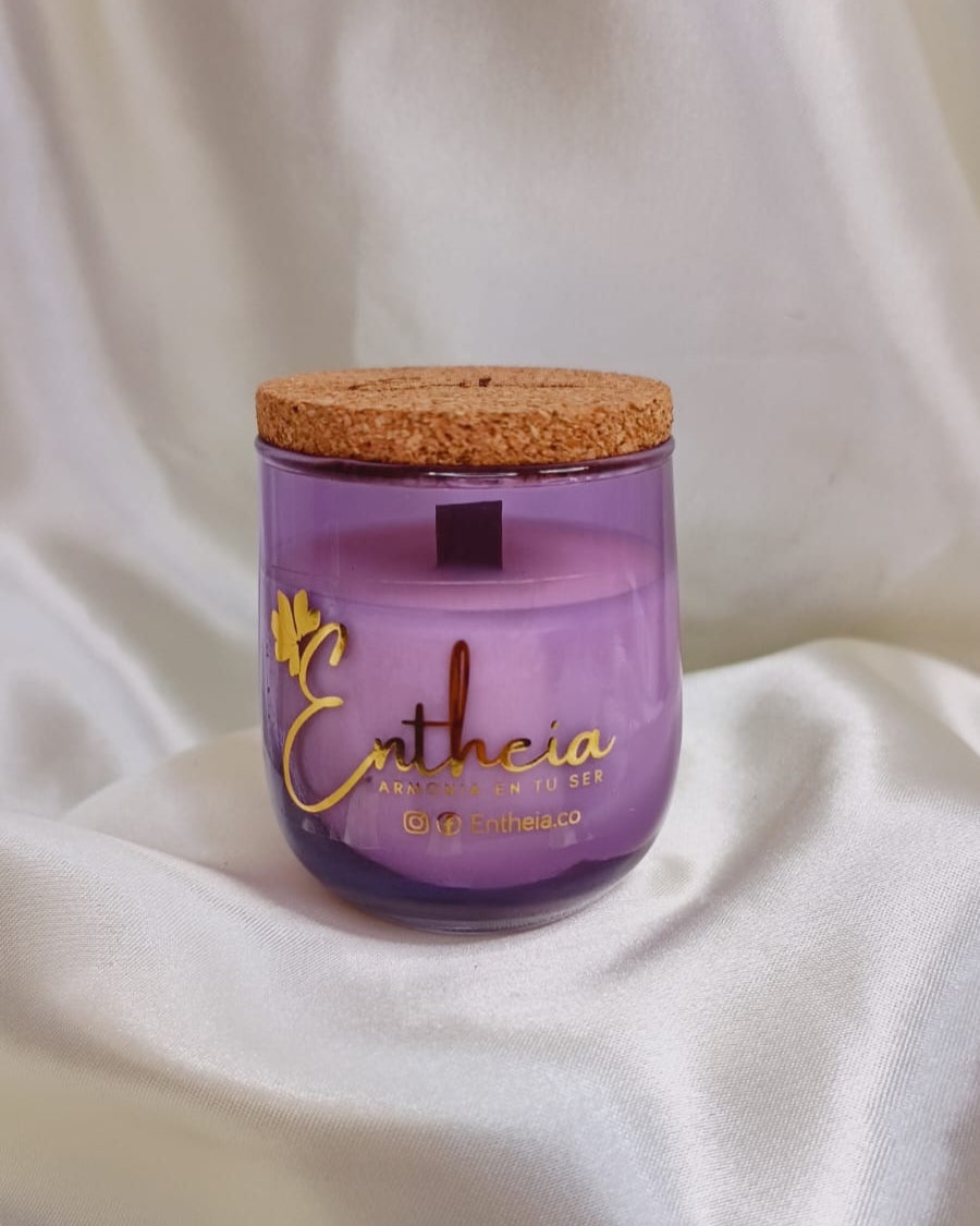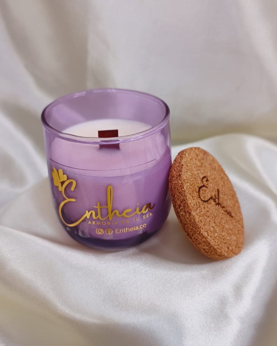 Cada vela es una obra de arte visual: su envase de vidrio reciclado, fabricado artesanalmente, fusiona el morado profundo y el azul del crepúsculo. Al encenderla, el pabilo de madera susurra, recordándote que la paz no es la ausencia de sonido, sino la armonía que se encuentra en él.